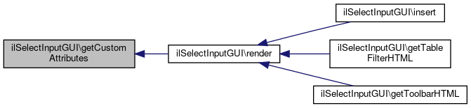 Here is the call graph for this function:| ilSelectInputGUI::getCustomAttributes | ( | ) |