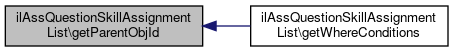 Here is the caller graph for this function:| ilAssQuestionSkillAssignmentList::getParentObjId | ( | ) |