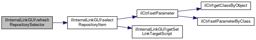 Here is the call graph for this function:| ilInternalLinkGUI::selectRepositoryItem | ( | ) |