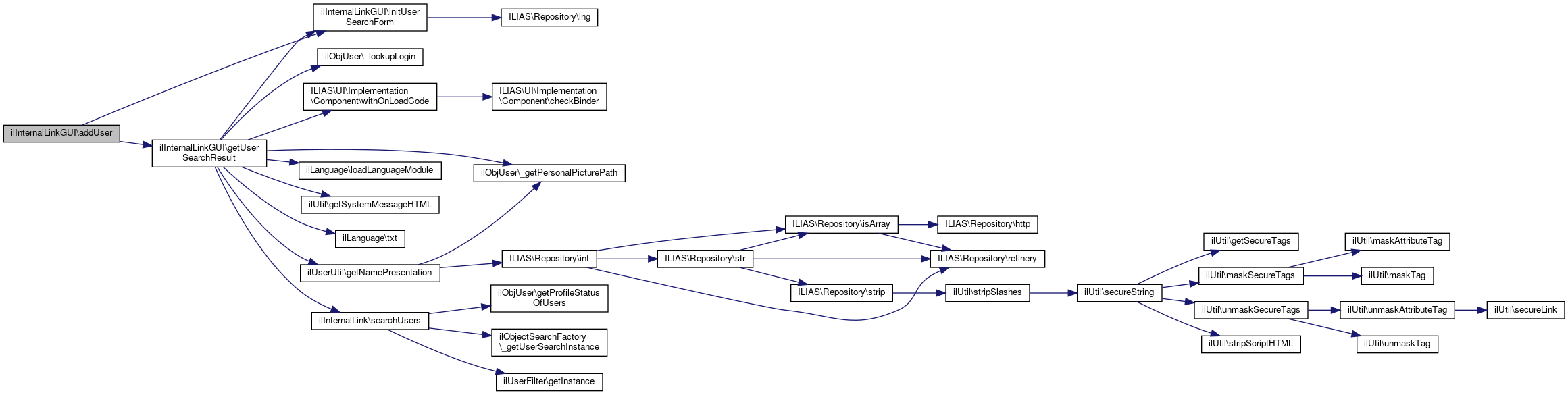 Here is the call graph for this function:| ilInternalLinkGUI::addUser | ( | ) |
