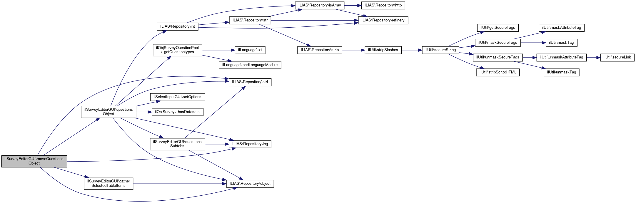 Here is the call graph for this function:| ilSurveyEditorGUI::moveQuestionsObject | ( | ) |