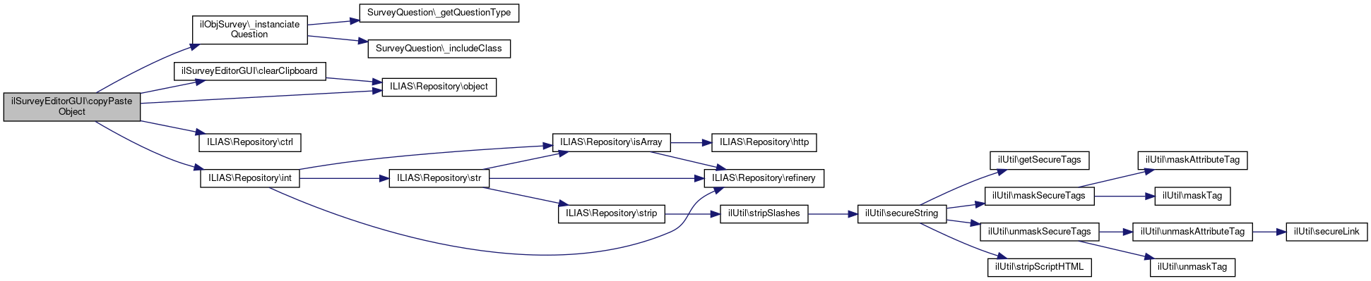 Here is the call graph for this function:| ilSurveyEditorGUI::executeCopyQuestionsToPoolObject | ( | ) |