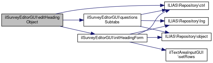 Here is the call graph for this function:| ilSurveyEditorGUI::editHeadingObject | ( | ilPropertyFormGUI | $a_form = null | ) |