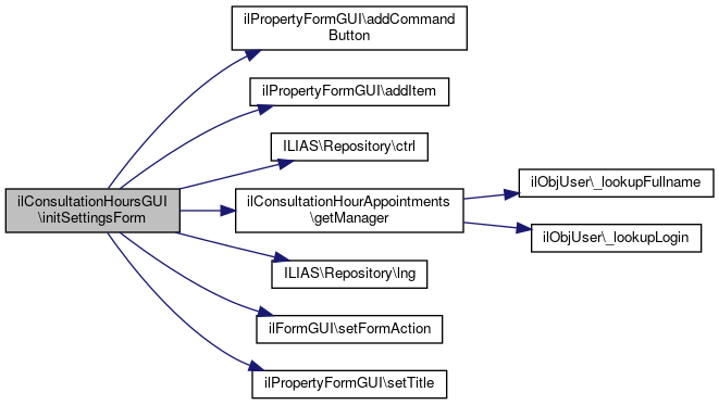 Here is the caller graph for this function:| ilConsultationHoursGUI::settings | ( | ) |