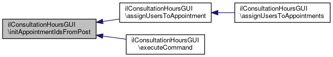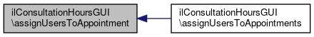 Here is the caller graph for this function:| ilConsultationHoursGUI::assignUsersToAppointments | ( | array | $users | ) |