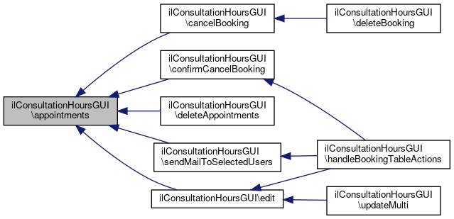 References ilObjUser\_lookupLogin(), appointments(), ILIAS\Repository\ctrl(), ilBookingEntry\getCurrentBookings(), ilMailFormCall\getRedirectTarget(), initAppointmentIdsFromTableAction(), and ILIAS\Repository\lng().