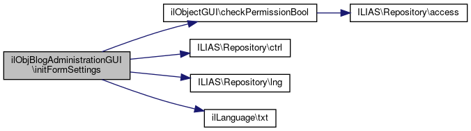 Here is the call graph for this function:| ilObjBlogAdministrationGUI::editSettings | ( | ?ilPropertyFormGUI | $a_form = null | ) |