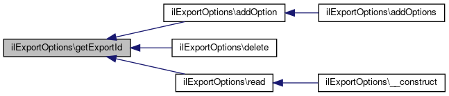 Here is the call graph for this function:| ilExportOptions::getExportId | ( | ) |