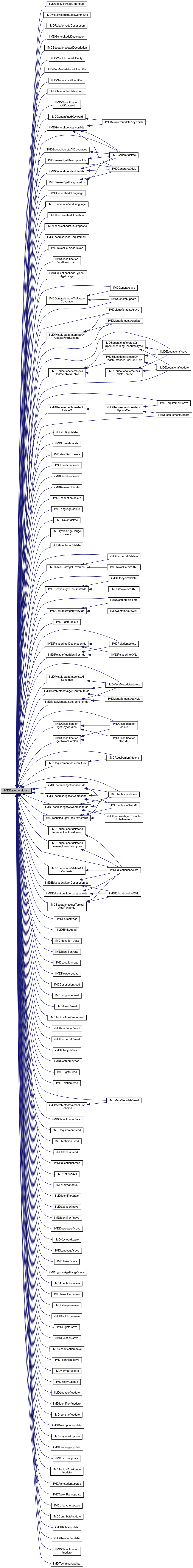 Referenced by ilMDLifecycle\addContribute(), ilMDMetaMetadata\addContribute(), ilMDRelation\addDescription(), ilMDGeneral\addDescription(), ilMDEducational\addDescription(), ilMDContribute\addEntity(), ilMDMetaMetadata\addIdentifier(), ilMDGeneral\addIdentifier(), ilMDRelation\addIdentifier_(), ilMDClassification\addKeyword(), ilMDGeneral\addKeyword(), ilMDGeneral\addLanguage(), ilMDEducational\addLanguage(), ilMDTechnical\addLocation(), ilMDTechnical\addOrComposite(), ilMDTechnical\addRequirement(), ilMDTaxonPath\addTaxon(), ilMDClassification\addTaxonPath(), ilMDEducational\addTypicalAgeRange(), ilMDGeneral\createOrUpdateCoverage(), ilMDMetaMetadata\createOrUpdateFirstSchema(), ilMDEducational\createOrUpdateInNewTable(), ilMDRequirement\createOrUpdateOr(), ilMDEntity\delete(), ilMDFormat\delete(), ilMDIdentifier_\delete(), ilMDLocation\delete(), ilMDIdentifier\delete(), ilMDKeyword\delete(), ilMDDescription\delete(), ilMDLanguage\delete(), ilMDTaxon\delete(), ilMDTypicalAgeRange\delete(), ilMDAnnotation\delete(), ilMDTaxonPath\delete(), ilMDLifecycle\delete(), ilMDContribute\delete(), ilMDRights\delete(), ilMDRelation\delete(), ilMDMetaMetadata\delete(), ilMDClassification\delete(), ilMDRequirement\delete(), ilMDTechnical\delete(), ilMDGeneral\delete(), ilMDEducational\delete(), ilMDEducational\deleteAllContexts(), ilMDGeneral\deleteAllCoverages(), ilMDEducational\deleteAllIntendedEndUserRoles(), ilMDEducational\deleteAllLearningResourceTypes(), ilMDRequirement\deleteAllOrs(), ilMDMetaMetadata\deleteAllSchemas(), ilMDLifecycle\getContributeIds(), ilMDMetaMetadata\getContributeIds(), ilMDRelation\getDescriptionIds(), ilMDGeneral\getDescriptionIds(), ilMDEducational\getDescriptionIds(), ilMDContribute\getEntityIds(), ilMDRelation\getIdentifier_Ids(), ilMDMetaMetadata\getIdentifierIds(), ilMDGeneral\getIdentifierIds(), ilMDClassification\getKeywordIds(), ilMDGeneral\getKeywordIds(), ilMDGeneral\getLanguageIds(), ilMDEducational\getLanguageIds(), ilMDTechnical\getLocationIds(), ilMDTechnical\getOrComposite(), ilMDTechnical\getOrCompositeIds(), ilMDTechnical\getRequirementIds(), ilMDTaxonPath\getTaxonIds(), ilMDClassification\getTaxonPathIds(), ilMDEducational\getTypicalAgeRangeIds(), ilMDFormat\read(), ilMDEntity\read(), ilMDIdentifier_\read(), ilMDIdentifier\read(), ilMDLocation\read(), ilMDKeyword\read(), ilMDDescription\read(), ilMDLanguage\read(), ilMDTaxon\read(), ilMDTypicalAgeRange\read(), ilMDAnnotation\read(), ilMDTaxonPath\read(), ilMDLifecycle\read(), ilMDContribute\read(), ilMDRights\read(), ilMDRelation\read(), ilMDMetaMetadata\read(), ilMDClassification\read(), ilMDRequirement\read(), ilMDTechnical\read(), ilMDGeneral\read(), ilMDEducational\read(), ilMDMetaMetadata\readFirstSchema(), ilMDEntity\save(), ilMDFormat\save(), ilMDIdentifier\save(), ilMDLocation\save(), ilMDIdentifier_\save(), ilMDDescription\save(), ilMDKeyword\save(), ilMDLanguage\save(), ilMDTaxon\save(), ilMDTypicalAgeRange\save(), ilMDAnnotation\save(), ilMDTaxonPath\save(), ilMDLifecycle\save(), ilMDContribute\save(), ilMDRights\save(), ilMDMetaMetadata\save(), ilMDRelation\save(), ilMDClassification\save(), ilMDRequirement\save(), ilMDTechnical\save(), ilMDGeneral\save(), ilMDEducational\save(), ilMDFormat\update(), ilMDEntity\update(), ilMDLocation\update(), ilMDIdentifier_\update(), ilMDIdentifier\update(), ilMDDescription\update(), ilMDKeyword\update(), ilMDLanguage\update(), ilMDTaxon\update(), ilMDTypicalAgeRange\update(), ilMDAnnotation\update(), ilMDTaxonPath\update(), ilMDLifecycle\update(), ilMDContribute\update(), ilMDRights\update(), ilMDMetaMetadata\update(), ilMDRelation\update(), ilMDClassification\update(), ilMDRequirement\update(), ilMDTechnical\update(), ilMDGeneral\update(), and ilMDEducational\update().