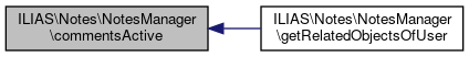 Here is the call graph for this function:| ILIAS\Notes\NotesManager::commentsActive | ( | int | $obj_id | ) |