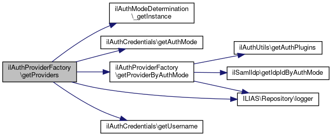 Here is the call graph for this function:| ilAuthProviderFactory::getProviderByAuthMode | ( | ilAuthCredentials | $credentials, |