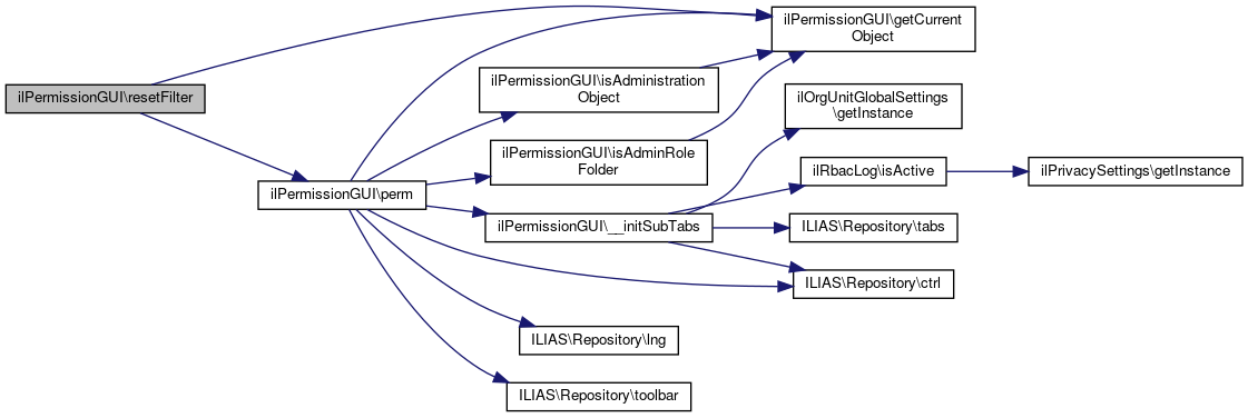 Here is the call graph for this function:| ilPermissionGUI::resetFilter | ( | ) |