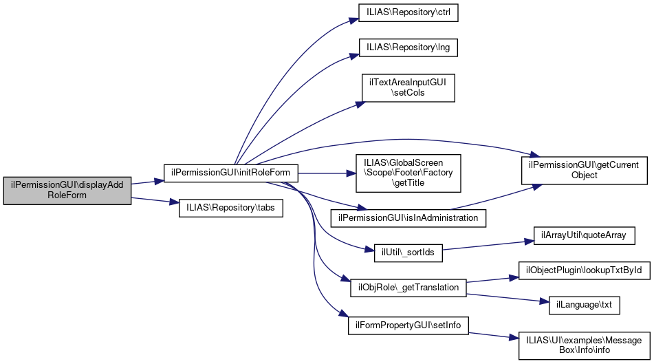 Here is the call graph for this function:| ilPermissionGUI::displayAddRoleForm | ( | ) |