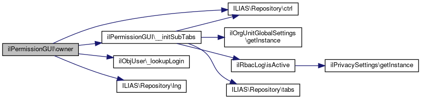 Here is the call graph for this function:| ilPermissionGUI::owner | ( | ) |