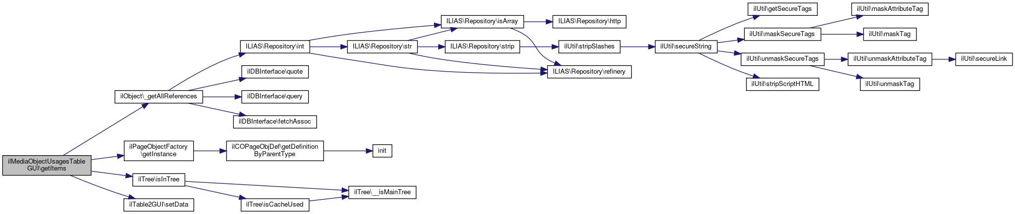 Here is the caller graph for this function:| ilMediaObjectUsagesTableGUI::getItems | ( | ) |