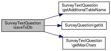 Here is the call graph for this function:| SurveyTextQuestion::saveToDb | ( | int | $original_id = 0 | ) |