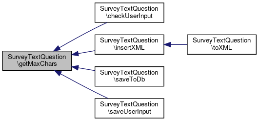 Here is the caller graph for this function:| SurveyTextQuestion::getMaxChars | ( | ) |