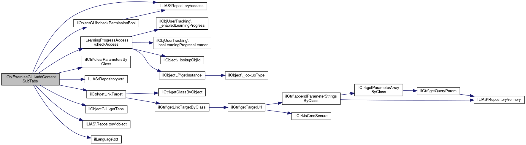 References $ass, $ass_manager, Vendor\Package\$f, ilObjectGUI\$html, ilObjectGUI\$object, $r, ilObjectGUI\$toolbar, $txt, ilObjectGUI\$user, ilLearningProgress\_tracProgress(), ilTabsGUI\activateTab(), ilToolbarGUI\addButton(), addContentSubTabs(), ilObjectGUI\checkPermission(), ILIAS\Repository\ctrl(), getCurrentMode(), ilExAssignment\getId(), ilObject\getId(), ilExAssignment\getInstancesByExercise(), getModeLink(), ILIAS\Repository\lng(), ILIAS\Repository\ui(), and ILIAS\Repository\user().