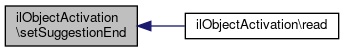 Here is the call graph for this function:| ilObjectActivation::setSuggestionEnd | ( | int | $end | ) |
