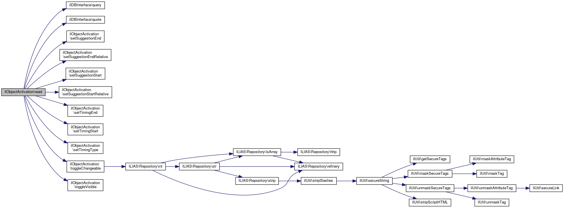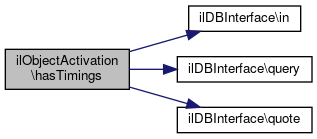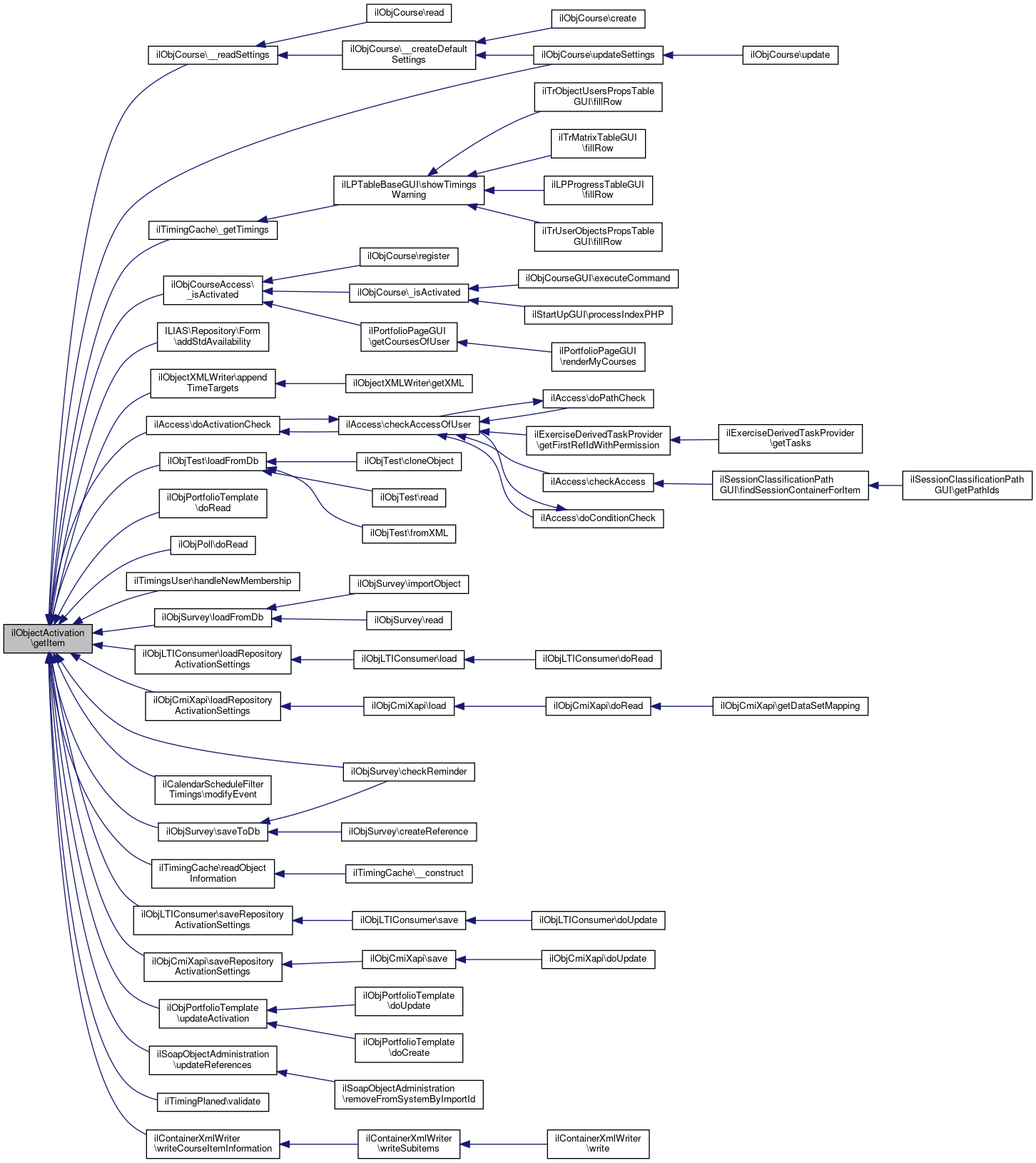 Referenced by ilObjCourse\__readSettings(), ilObjCourseAccess\_isActivated(), ilInfoScreenGUI\addAccessPeriodProperty(), ilInfoScreenGUI\addAvailability(), addListGUIActivationProperty(), ilSoapObjectAdministration\addReferences(), ILIAS\Repository\Form\addStdAvailability(), ilObjectXMLWriter\appendTimeTargets(), ilObjSurvey\checkReminder(), ilAccess\doActivationCheck(), ilObjPortfolioTemplate\doRead(), ilObjPoll\doRead(), ilPollStateInfo\isOfflineOrUnavailable(), ilObjTest\loadFromDb(), ilObjSurvey\loadFromDb(), ilObjLTIConsumer\loadRepositoryActivationSettings(), ilObjCmiXapi\loadRepositoryActivationSettings(), ILIAS\Object\Properties\ObjectReferenceProperties\ObjectAvailabilityPeriodPropertiesCachedRepository\retrieveDataForWhereClause(), ilObjLTIConsumer\saveRepositoryActivationSettings(), ilObjCmiXapi\saveRepositoryActivationSettings(), ILIAS\Repository\Form\saveStdAvailability(), ilObjSurvey\saveToDb(), ilObjTest\storeActivationSettings(), ilObjPortfolioTemplate\updateActivation(), ilObjPollGUI\updateCustom(), ilSoapObjectAdministration\updateReferences(), and ilObjCourse\updateSettings().