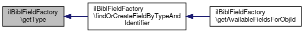 Here is the call graph for this function:| ilBiblFieldFactory::getType | ( | ) |