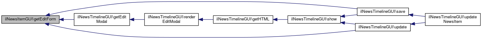 Here is the caller graph for this function:| ilNewsItemGUI::editNewsItem | ( | ) |