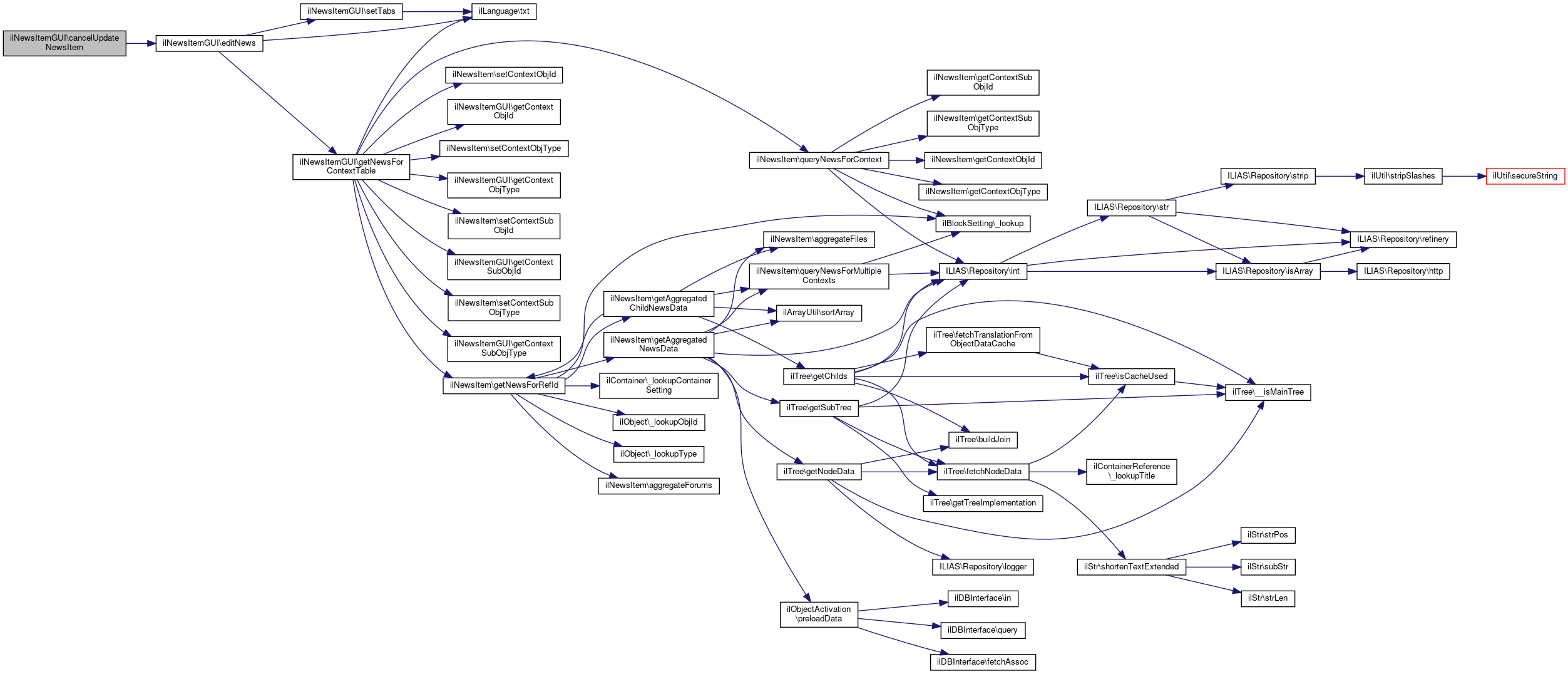Here is the call graph for this function:| ilNewsItemGUI::cancelUpdateNewsItem | ( | ) |