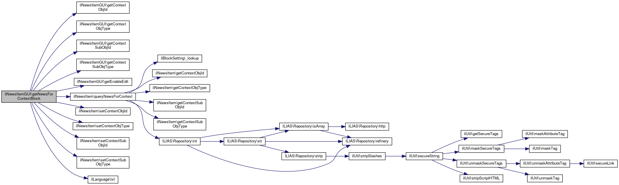 Here is the call graph for this function:| ilNewsItemGUI::getNewsForContextBlock | ( | ) |