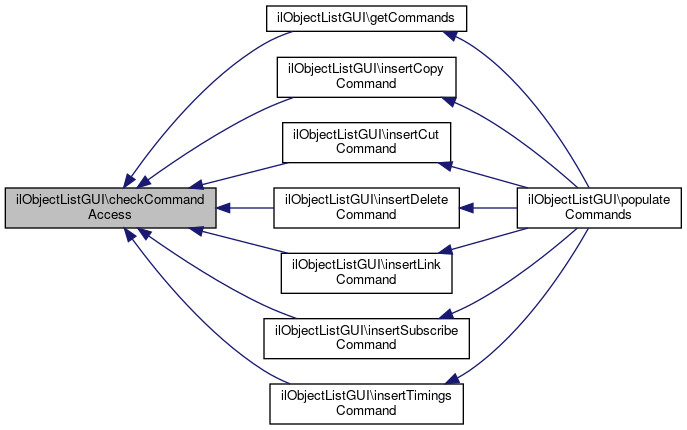 | checkCommandAccess (string $permission, string $cmd, int $ref_id, string $type, ?int $obj_id=null) | |