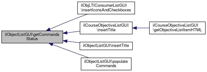 Referenced by ilObjTestListGUI\addCommandLinkParameter(), checkCommandAccess(), ilRemoteObjectBaseListGUI\createDefaultCommand(), determineProperties(), ilRemoteObjectBaseListGUI\getAsCard(), getCommandId(), ilObjFileBasedLMListGUI\getCommandLink(), ilObjGlossaryListGUI\getCommandLink(), ilObjSAHSLearningModuleListGUI\getCommandLink(), ilObjStudyProgrammeReferenceListGUI\getCommandLink(), ilObjStudyProgrammeReferenceListGUI\initItem(), ilObjCategoryReferenceListGUI\initItem(), ilObjGroupReferenceListGUI\initItem(), ilObjCourseReferenceListGUI\initItem(), initItem(), insertCommonSocialCommands(), ilRemoteObjectBaseListGUI\insertTitle(), and setConditionTarget().