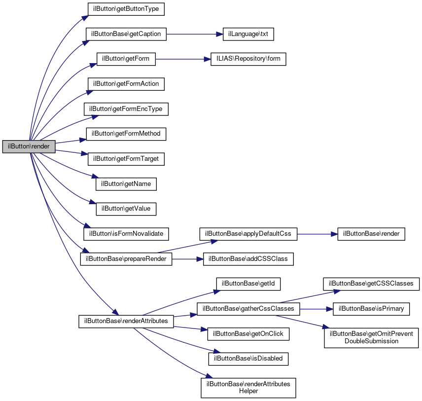 References getButtonType(), ilButtonBase\getCaption(), getForm(), getFormAction(), getFormEncType(), getFormMethod(), getFormTarget(), getName(), getValue(), isFormNovalidate(), ilButtonBase\prepareRender(), and ilButtonBase\renderAttributes().