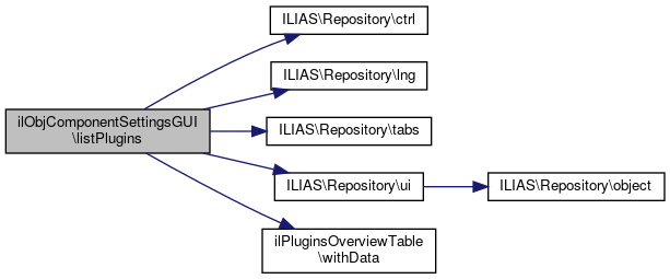 References XapiProxy\$plugin, ILIAS\Repository\ctrl(), ILIAS\Repository\lng(), ILIAS\Repository\tabs(), ILIAS\Repository\ui(), and ilPluginsOverviewTable\withData().