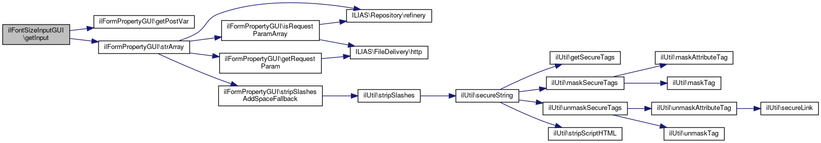 Here is the call graph for this function:| ilFontSizeInputGUI::getInput | ( | ) |