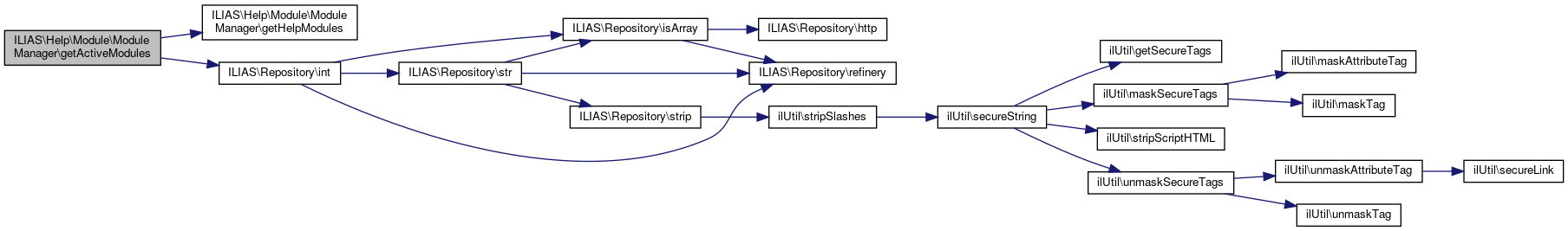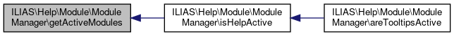 Here is the call graph for this function:| ILIAS\Help\Module\ModuleManager::getActiveModules | ( | ) |