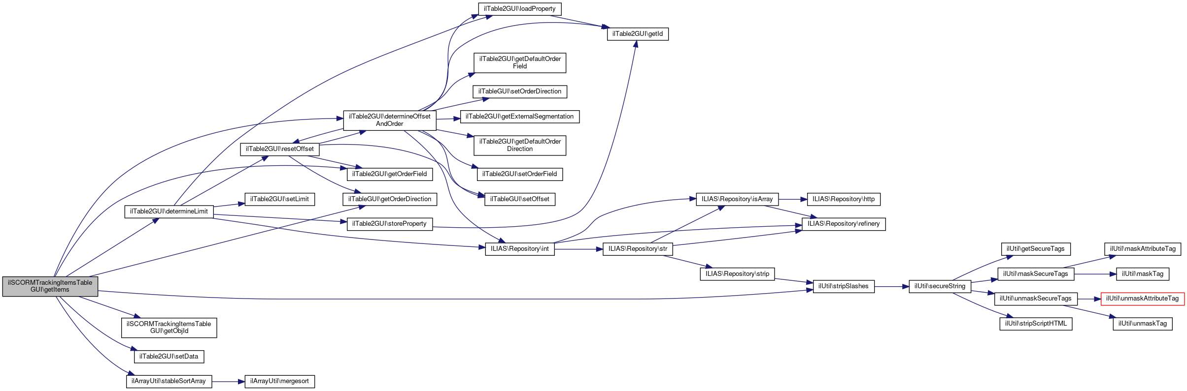 Here is the call graph for this function:| ilSCORMTrackingItemsTableGUI::getItems | ( | ) |