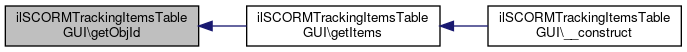 Here is the caller graph for this function:| ilSCORMTrackingItemsTableGUI::getObjId | ( | ) |
