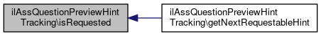 Here is the call graph for this function:| ilAssQuestionPreviewHintTracking::isRequested | ( | $hintId | ) |
