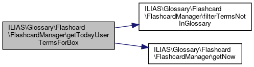 Here is the call graph for this function:| ILIAS\Glossary\Flashcard\FlashcardManager::getUserTermsForBox | ( | int | $box_nr | ) |