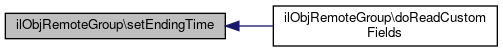 Here is the caller graph for this function:| ilObjRemoteGroup::setEndingTime | ( | $a_time | ) |