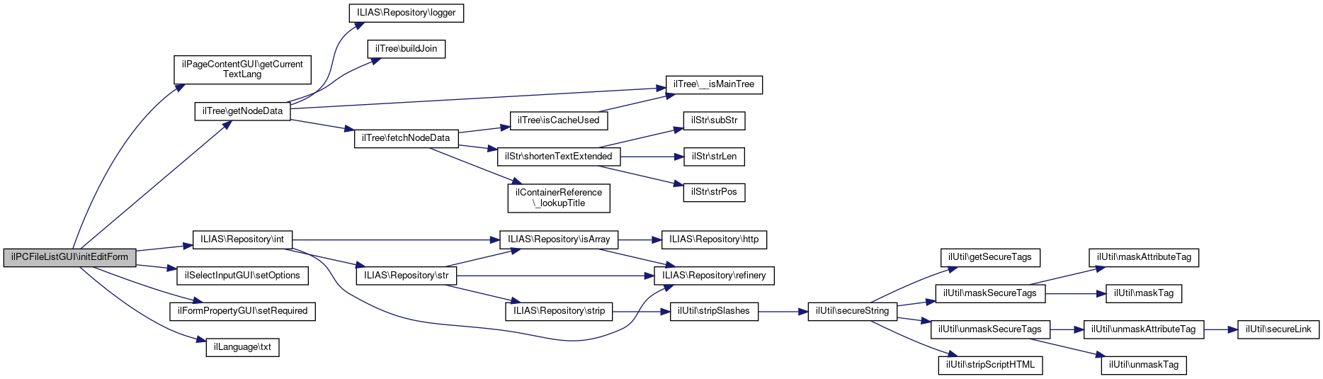 Here is the call graph for this function:| ilPCFileListGUI::initEditForm | ( | string | $a_mode = "edit" | ) |