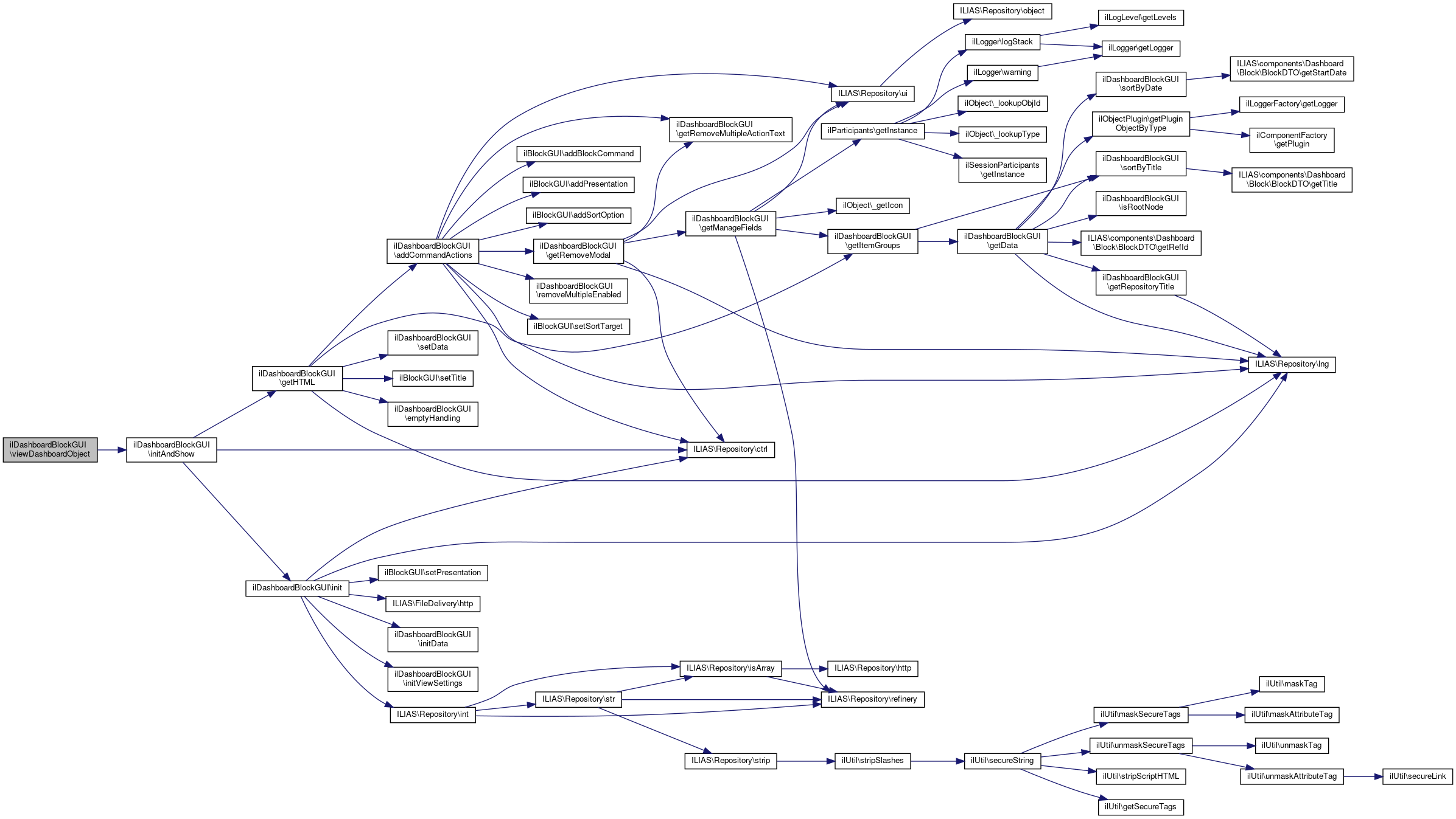 Here is the caller graph for this function:| ilDashboardBlockGUI::viewDashboardObject | ( | ) |