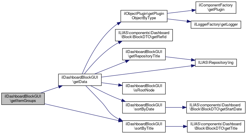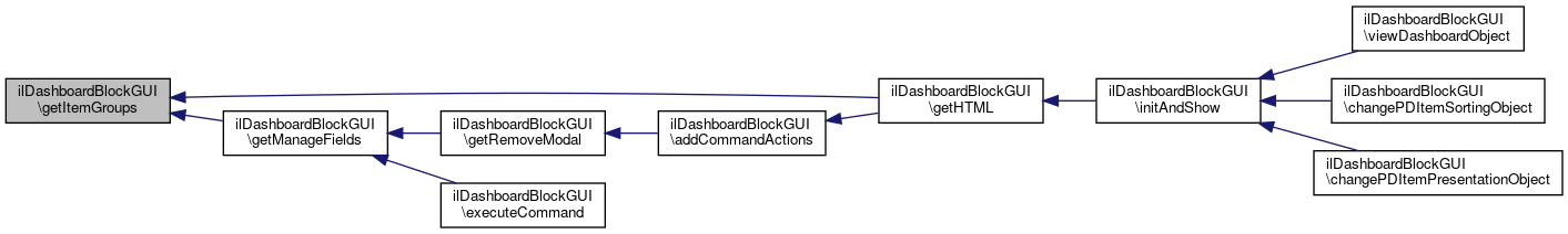 Here is the caller graph for this function:| ilDashboardBlockGUI::getItemGroups | ( | ) |