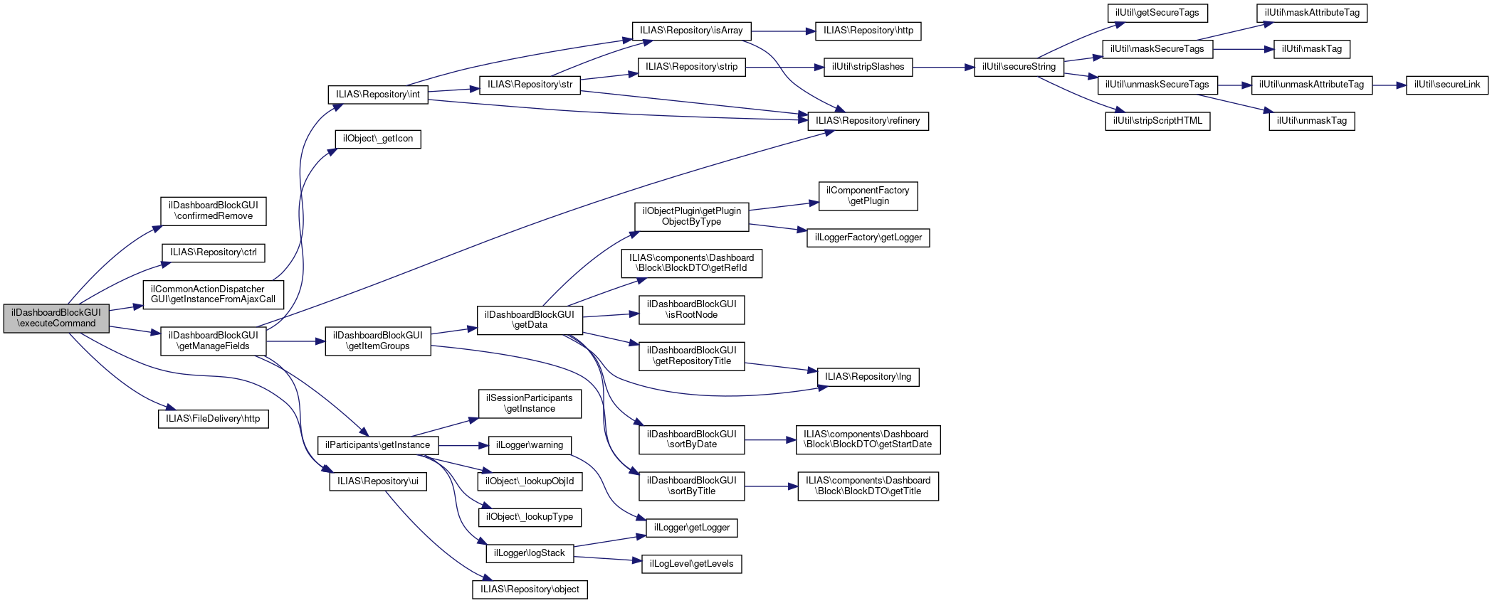 Here is the caller graph for this function:| ilDashboardBlockGUI::executeCommand | ( | ) |