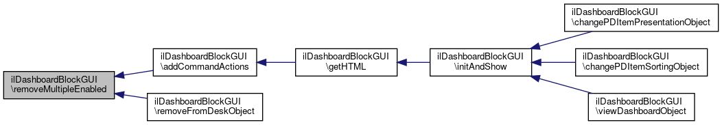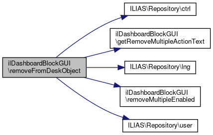 Here is the call graph for this function:| ilDashboardBlockGUI::removeFromDeskObject | ( | ) |