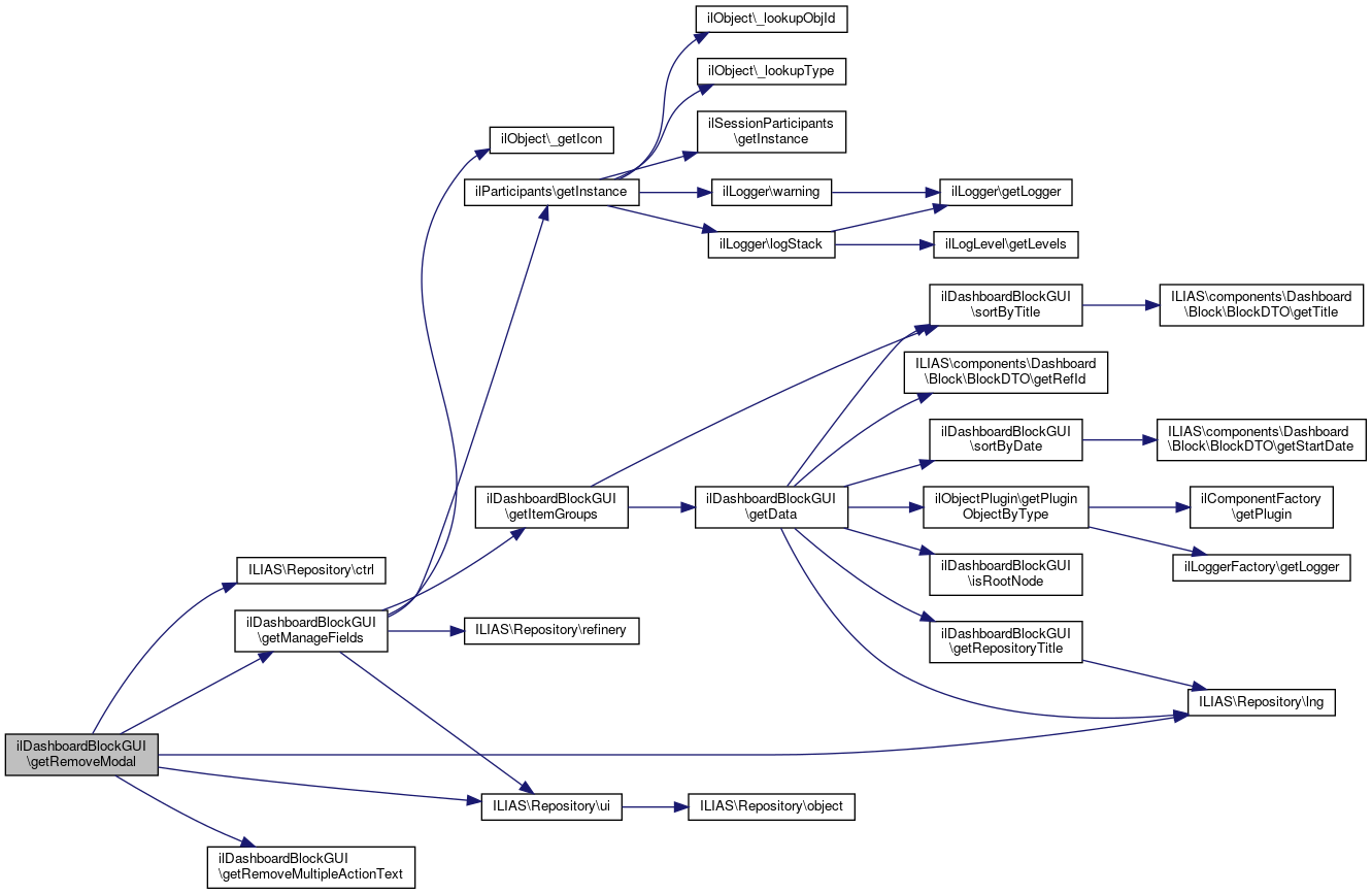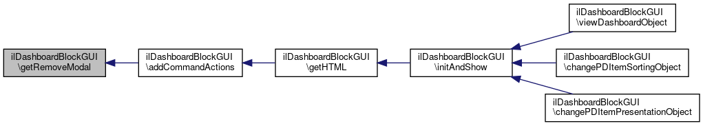 Here is the caller graph for this function:| ilDashboardBlockGUI::getRemoveModal | ( | ) |