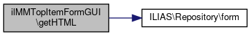 Here is the call graph for this function:| ilMMTopItemFormGUI::getHTML | ( | ) |