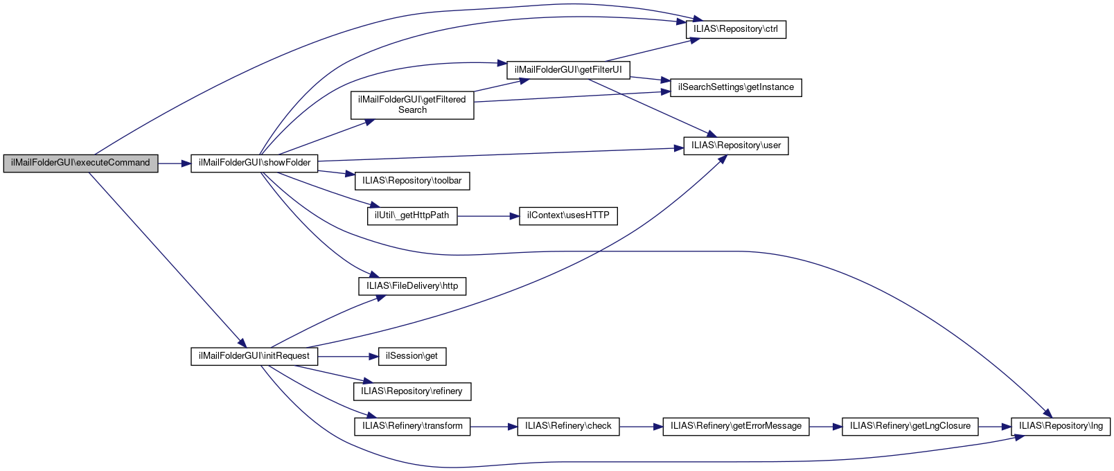Here is the call graph for this function:| ilMailFolderGUI::executeCommand | ( | ) |