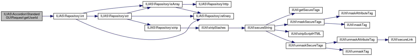 Here is the call graph for this function:| ILIAS\Accordion\StandardGUIRequest::getUserId | ( | ) |