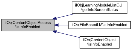 Referenced by ilObjLearningModuleListGUI\getInfoScreenStatus(), ilObjFileBasedLM\isInfoEnabled(), and ilObjContentObject\isInfoEnabled().
