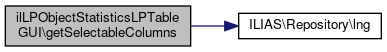 Here is the caller graph for this function:| ilLPObjectStatisticsLPTableGUI::getSelectableColumns | ( | ) |